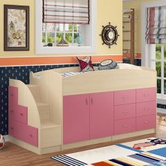 Кровать-чердак "Дюймовочка-2" подойдет детям от 1,5 до 10 лет. Кровать объединяет удобное спальное место, тумбу с полками для хранения вещей, письменный стол и лестницу, в ступеньках которой имеются вместительные ящики. Такой уголок экономит пространство в детской комнате, при этом обеспечивая все необходимые функции.