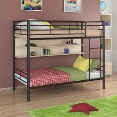 Материал каркаса: стальная труба. Все металлические элементы кровати покрыты износоустойчивой полимерной порошковой краской без запаха. Полка изготовлена из ЛДСП, цвета: Венге, Дуб молочный.