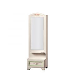 Фасады: МДФ в финиш-пленке, декор – «ясень белый», патина, рисунок, зеркало с фацетом.