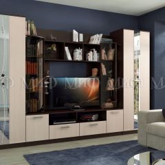 Шикарная современная стенка с продуманным до тонкостей дизайном – для формирования уникального интерьера гостиной зоны. В оформлении использован пескоструйный рисунок на зеркалах и дверцы с тонированными стеклами.