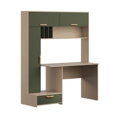 Столешницы столов и приставных тумб выполнены из МДФ толщиной 32 мм. Опоры столов, топы шкафов и подкатной тумбы выполнены из ЛДСП толщиной 32 мм, остальные элементы, в том числе задние стенки, выполнены из ЛДСП 16 мм.