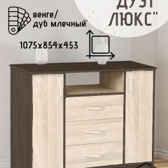 Комод Универсальный Дуэт Люкс (Венге/Млечный дуб) Эко вы можете купить в интернет-магазине Meb96.ru по цене 5 870 руб. Только качественная мебель от Российских брендов. Если у вас возникли вопросы или вам нужна консультация по наличию, срокам доставки, ценам, обращайтесь любым удобным способом.