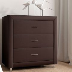 Элегантный комод отличается стильным дизайном и повышенным удобством. Три выдвижных ящика оснащены надёжными направляющими, обеспечивающими лёгкое открытие. Фасад ящиков и стенки комода покрыты обивочным материалом. Для удобства использования и продления срока эксплуатации, рекомендуется использовать стеклянную накладку. Накладка используется в качестве столешницы для комода и защищает его от повреждений и загрязнений.